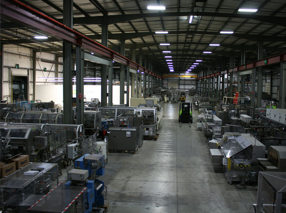 The warehouse allows Aaron Kendell Packaging Equipment to showcase its diverse inventory of new, reconditioned and used packaging machinery.