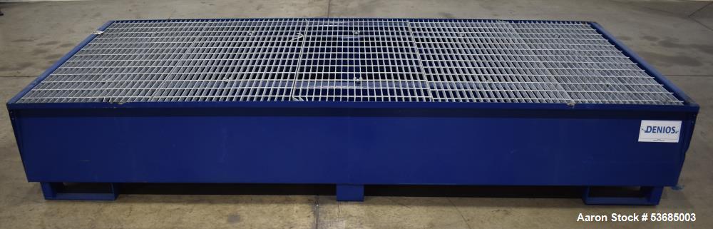Unused- Denios IBC 2-Tote Bin Spill Containment Pallet System. Capacity (2) 500-Gallon IBC totes. Approximate 500 gallon sump capacity. Approximate External dimensions 120" x 53" x 26". Approximate internal dimensions 116-3/4" x 49" x 16" deep. Steel Grate platform. Approximate 15,000 lbs. Total load capacity. Feet for easy forklift access.