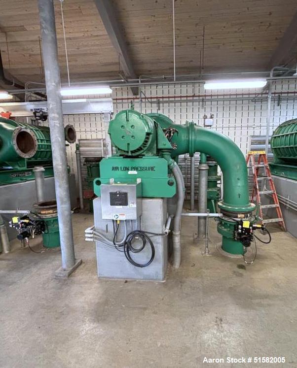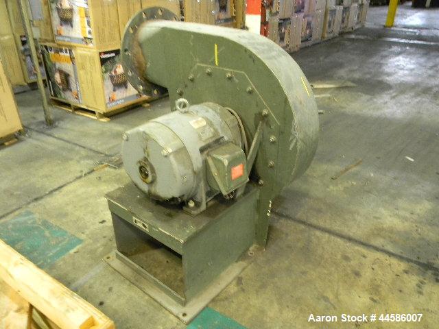 Used- Chicago Blower Recycle Heater FD Fan (200-KB-101). Includes: FAN; 4014D/1904, Heavy Duty, airfoil blade wheel, Arr 7Si, with inlet box at 0 position, TH or BH discharge, CW rotation, 110% width. MOTOR; 150 HP, 1800 RPM, 447T frame, TEFC, 460,3,60 Hz - variable torque, IEEE-841. Insulated DE and NDE bearing, 120V space heater winding RTD's (2/Phase) and Bearing RTD's in common JB. SILENCER; Aeroacoustic SilentFlow Model IB, Vertical, lifting lugs, inlet screen, rainhood, and velocity tube. ADDED; Vibration Probe/Switch, Metrix Model ST5491E-021-002-00 -LCD INDICATOR, LOOP POWERED -4-20 mA OUTPUT PROPORTIONAL TO VELOCITY -INTERFACES W/ PLC, DCS & 4-20mA MONITORS -1 IPS FULL SCALE RANGE -1/4" NPT MOUNTING STUD -CSA/NRTL/C FOR CLASS I, DIV 1, GRPS C-D AND CLASS II, DIV 1, GRPS E-G -4-20MA FLYING LEADS CONNECTION -STANDARD HIGH(1500HZ), LOW(2HZ) FILTERS, (2) 1-1/2" 300# plugged TW connections to the inlet silencer. Built 2020.