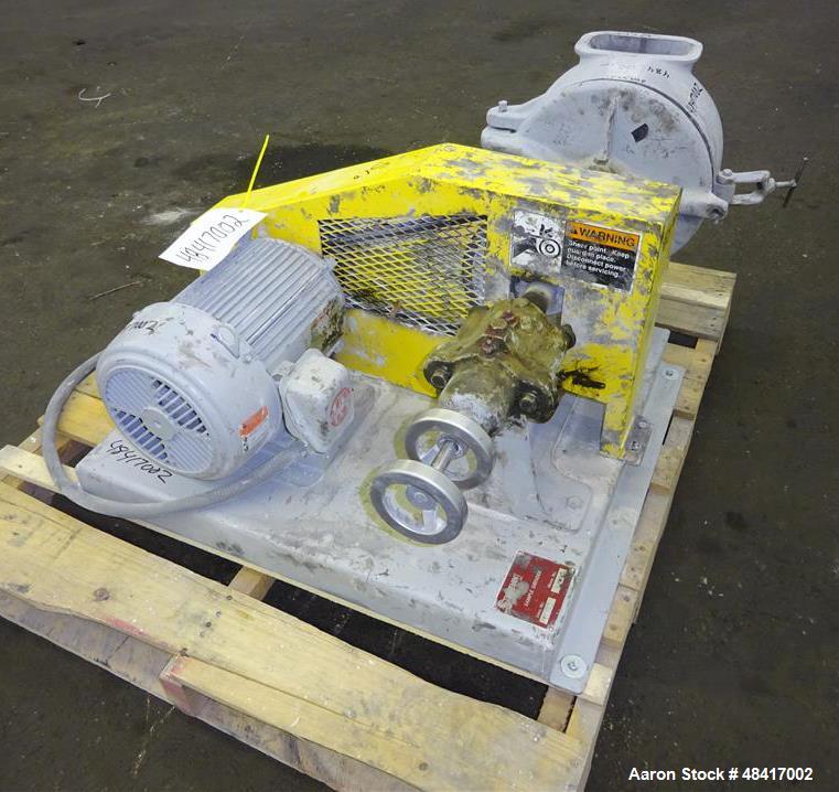Used Sturtevant Sample Grinder, Model 2-10, Carbon Steel. Approximate capacity 100 to 400 pounds per hour, product size 20 to 100 mesh. (1) 10" diameter grinding disc, driven by a 3 hp, 3/60/208-230/460 volt, 1750 rpm motor. Hinged door with (1) 10" diameter stationary grinding disc. Approximate top inlet 6-1/4" x 2-1/4", bottom outlet 6-3/4" x 4-3/8". Mounted on a carbon steel frame. Serial #1170.