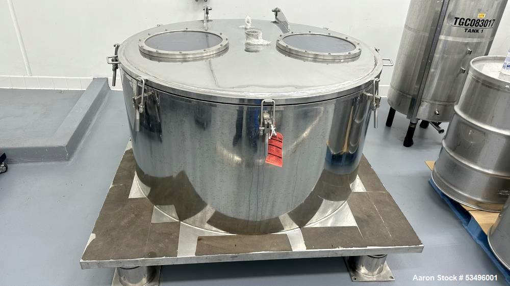 Used- Nanjing Kingreat Basket Centrifuge, Model BB-100. 1500 RPM max speed. 100 lbs. max basket cap. Approximate 68" (1720mm) x 45" (1150mm) x 60" (1530mm). 7.5 kw (10 HP). Built 2019.